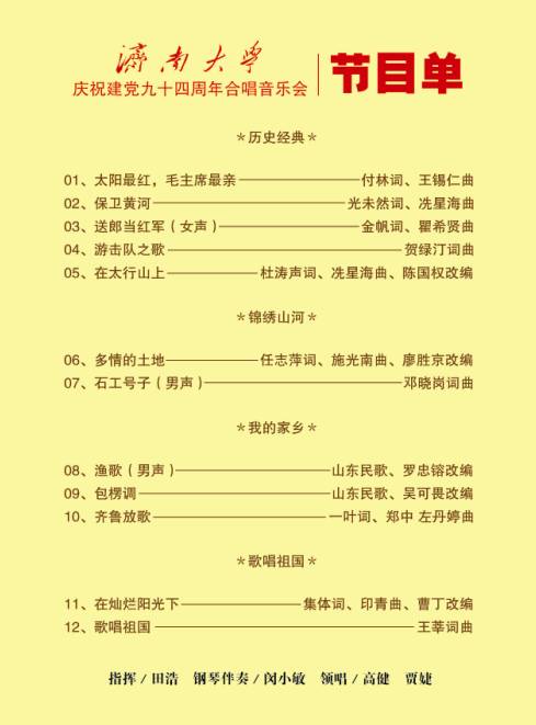 红色经典 齐鲁放歌—香港三级片 庆祝建党九十四周年合唱音乐会节目单