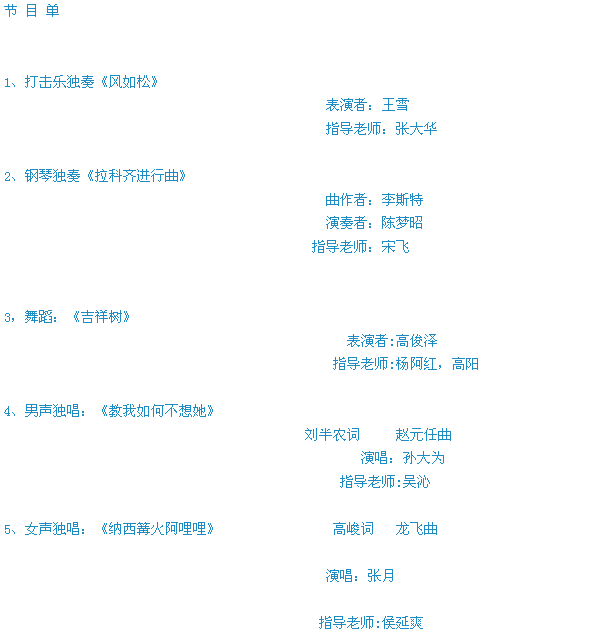 “献给老师的歌”--香港三级片 优秀学生专业汇报音乐会节目单