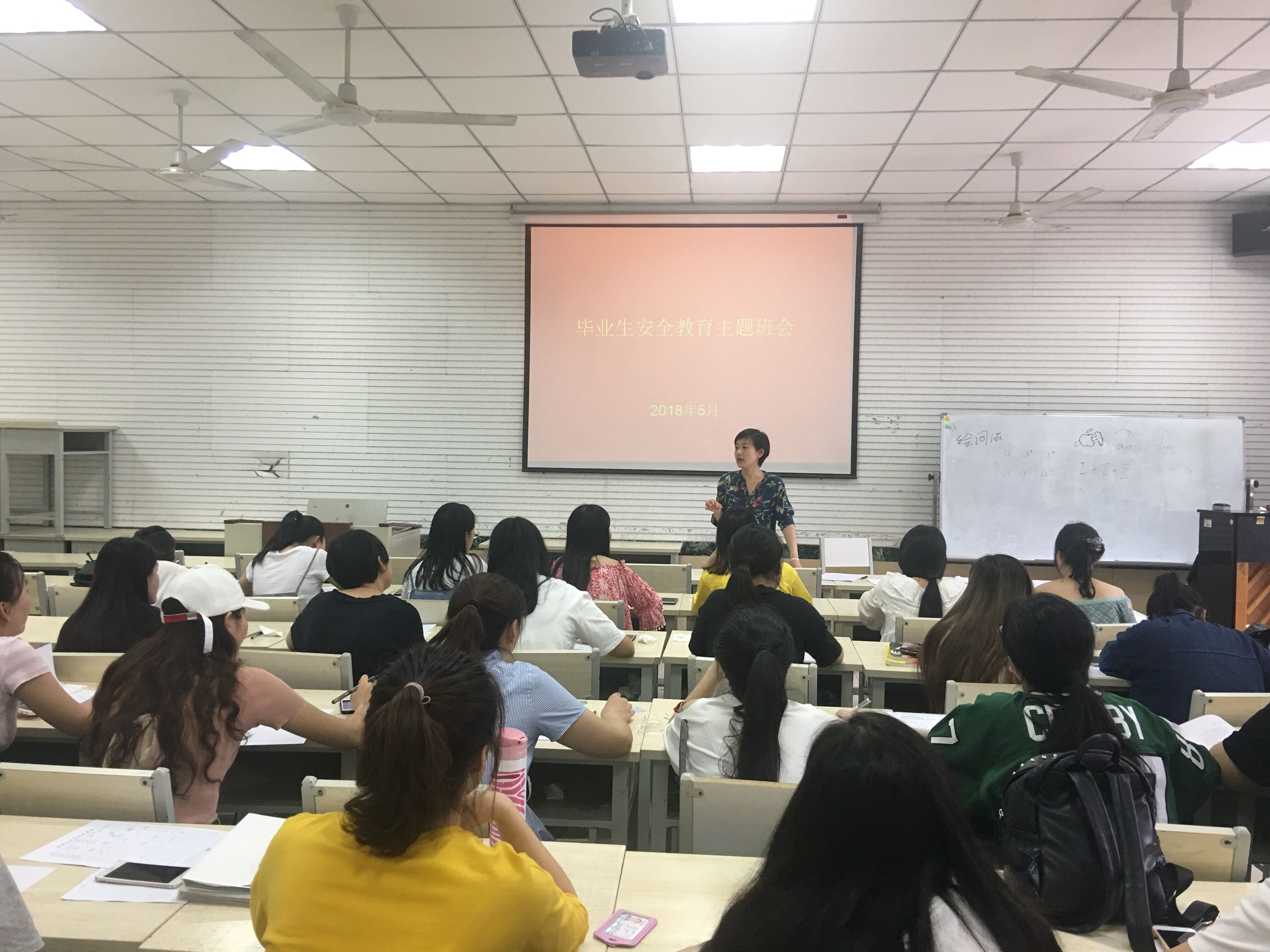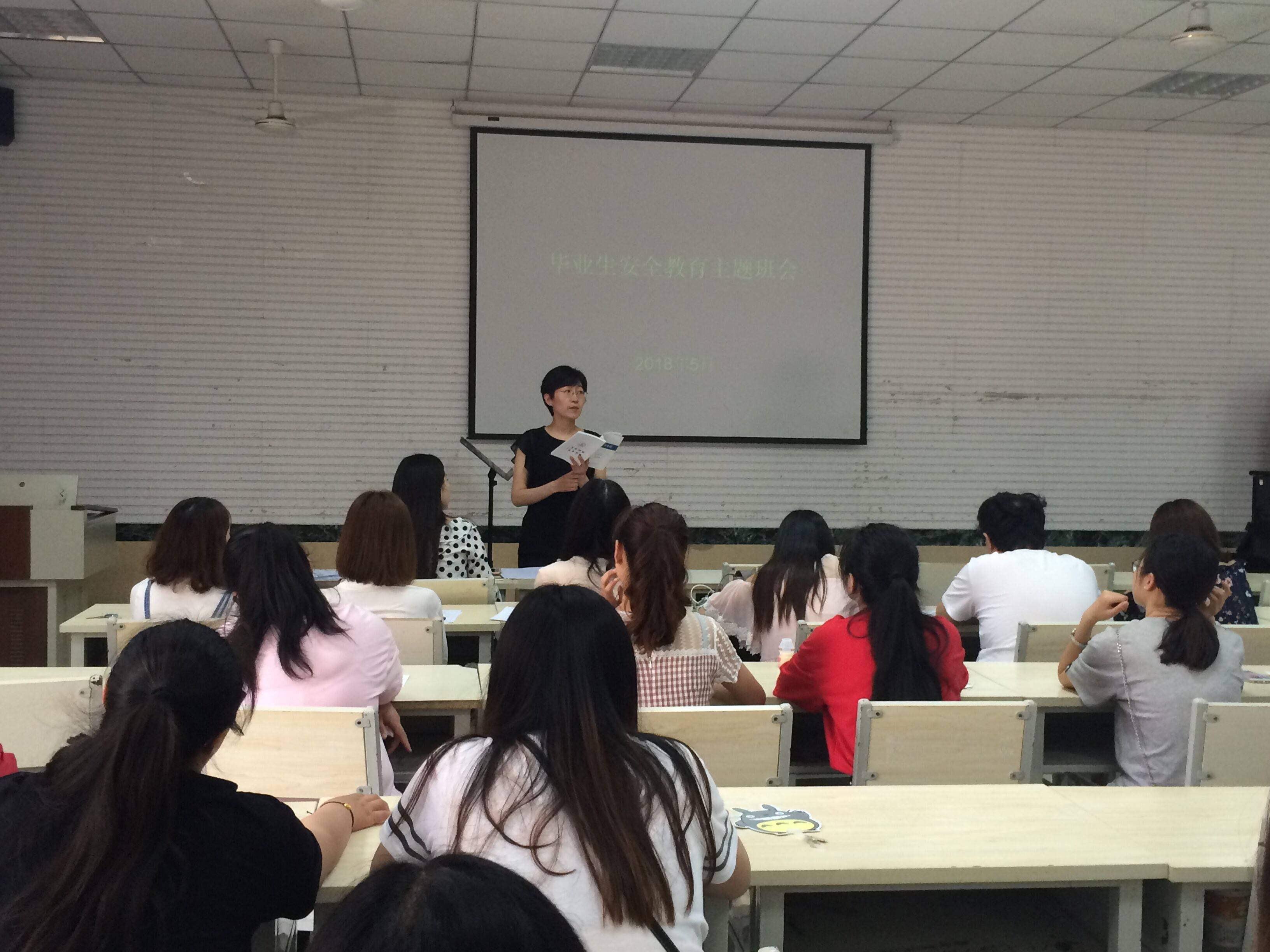 2018届8个本科毕业班和1个研究生毕业班陆续开展了安全教育主题班会,班会由2018届毕业生辅导员宋莉璐主持,邀请了各班班主任参加。