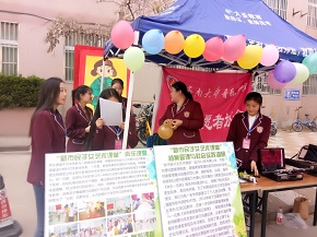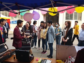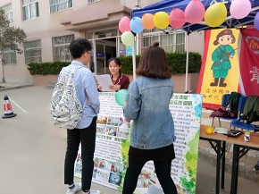 青协的志愿者们带着活动需要的物品来到了二食后街,一切准备就绪后,活动正式开始。