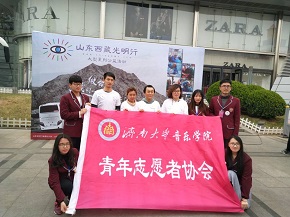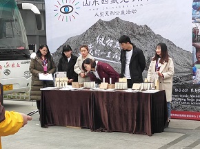 青协的志愿者们参加了“山东广播电视台融媒体资讯中心联合爱心企业共同发起的'清水岩·茶溪'2018山东西藏光明行爱心义卖活动”。本次活动主要包括:一是大力宣传“山东西藏光明行”活动,让更多的民众获悉这次援藏活动,加大对西藏白内障患者的关注;二是帮助爱心企业进行义卖,义卖所得款项将悉数赠与患者进行手术。