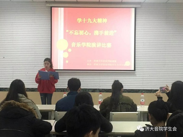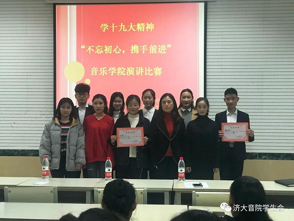 比赛开始前,由本次比赛主持人宣布本次比赛规则及注意事项。紧接着,崔英静书记进行讲话,并预祝参赛选手取得好成绩。音理1701马人超同学的演讲拉开了本次比赛的序幕。选手结合PPT,演讲绘声绘色,激情洋溢。器乐班刘珂同学也不相示弱,整个演讲过程感情丰富,生动形象地通过革命先烈的事迹表达了十九大会议精神。音教班穆元炜同学将演讲稿与PPT巧妙结合,内容丰富,调律班王佳妮同学演讲内容与十九大精神切合,语言生动。本次比赛选手们准备充足,展现了香港三级片学子的较强语言表达能力与心理素质。最后,崔书记对选手表现进行点评与指导,并与选手们合影留念。