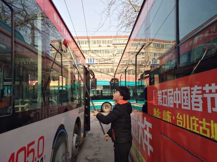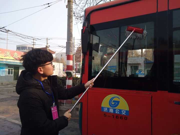 的志愿者,来济南公交五分公司车队开展“清洁卫生志愿服务”。寒冷的天气让公交出行逐渐成为了广大市民出行的首选。在保证顺利运送乘客的同时,保障车内干净整洁,让广大乘客拥有一个舒适的乘车环境是这次活动的主要任务。志愿者们带着扫帚、簸箕、抹布等工具对所有公交车进行了卫生死角清理工作,对于平日里车厢内不容易清扫到的地方进行了大扫除。整个劳动过程中,志愿者们分工明确、一丝不苟。无论是座椅下方,还是门缝里的死角,都清洁的干干净净。