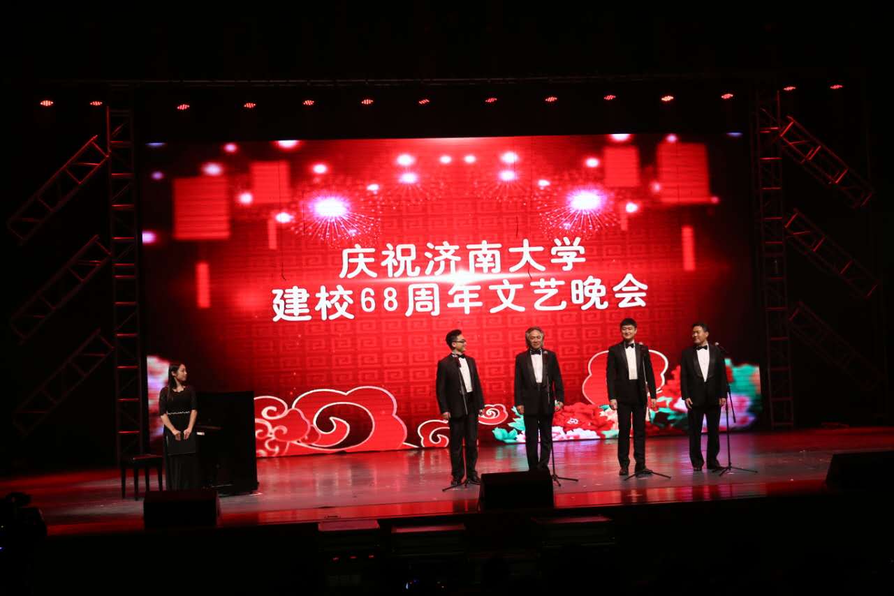 的老师们也精心编排,展示了自己高超的本领,一首《喀秋莎》的欢快旋律也让很多人跟着哼唱,全场气氛达到了高点。还有一些节目,也很出色,尖叫声和掌声不绝于耳。最后,在乐团的交响乐和泉城合唱团成员合作的一曲《共筑中国梦》中,结束了这场表演。也得到了在场领导和观众的认可。