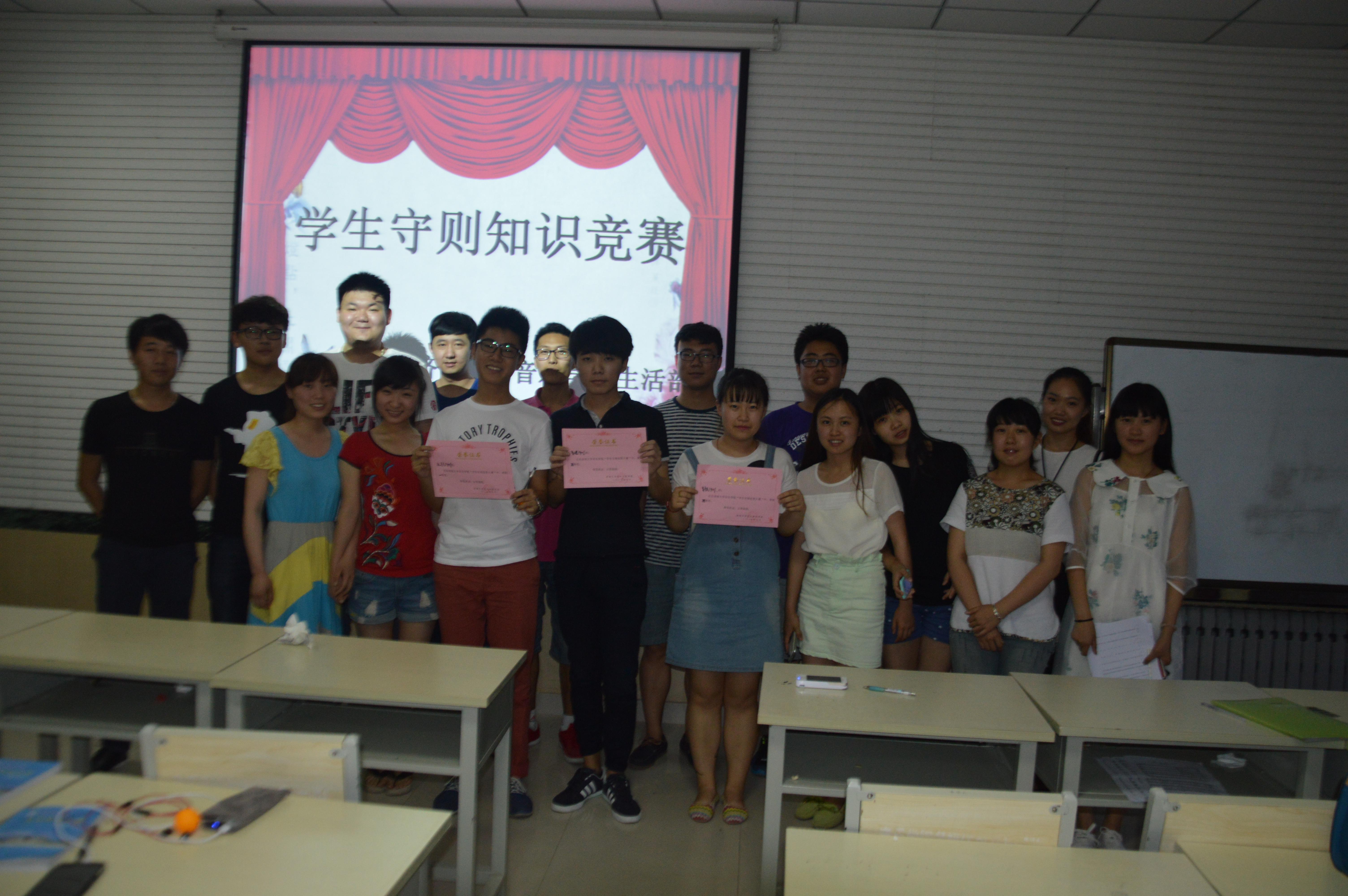 学生会在多媒体三教室举办了第一届学生守则知识竞赛,2014级各班代表参加了此次竞赛。