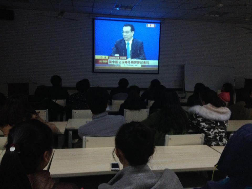 多媒体教室观看“李克强总理答记者问”视频录像。