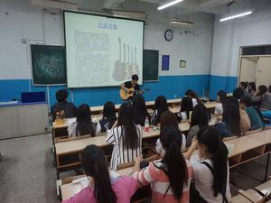 旅游系的课堂,开展理论讲述与现场欣赏同步的音乐讲堂,此次志愿讲堂主要以器乐为主,秉承着“音和乐谐,德艺双馨”的理念,普及吉他和萨克斯等乐器的知识,提升普通专业学生对音乐艺术更深层次的了解。