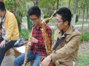 青协文艺演出队的同学打头阵,在场参与活动的同学有的抱着吉他边弹边唱,有的同学拿着萨克斯等乐器来到现场,走出琴房和排练厅,在自然中演奏刚开始他们有些拘谨,但是,几曲子过后大家都放开了,而且还有好多现场点歌互动的同学,许多路过的同学都跟着音乐情不自禁的哼唱起来,就连刚学走路的小朋友听到音乐后都跳了起来。