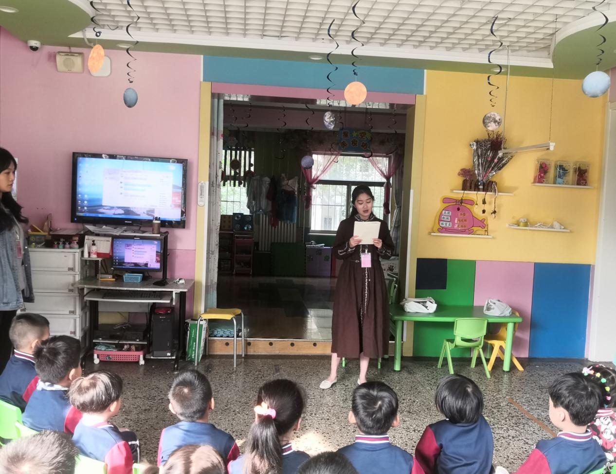 的4位青年志愿者们来到了济大附属幼儿园,本次的活动主题是“学会感恩”希望小朋友们懂得感恩。