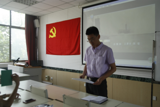 学生第一党支部书记高学德老师主持。会议开始学生党员们先共同观看党员纪录片《信仰》之《时代先锋》。播放完纪录片后,按照会议程序,首先由辅导员高学德老师带领所有毕业生党员重温入党誓词。宣誓人立正,面向党旗,举右手握拳进行宣誓,庄严的宣誓表达了同学们为共产主义事业努力奋斗的决心和对党的无限忠诚。之后,党委副书记崔英静从毕业生党员如何做好组织关系转接工作、在毕业以后如何提高党员意识、如何增强党员纪律等方面提出了几点要求与希望,并要求党员要在毕业生离校前发挥党员先锋模范作用,为香港三级片