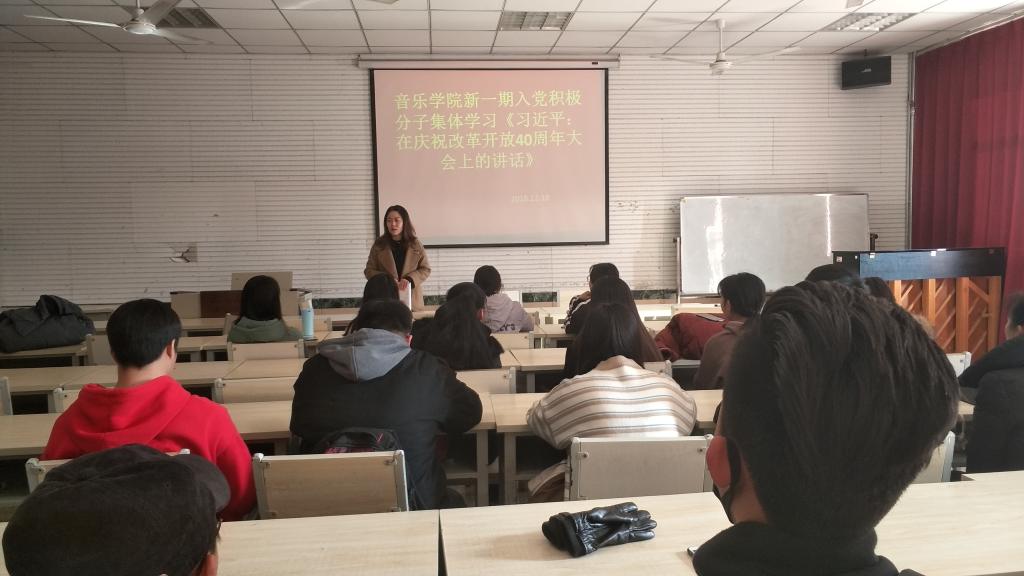 庆祝改革开放40周年大会于2018年12月18日上午10时在人民大会堂举行,中共中央总书记,国家主席,中央军委主席习近平出席大会并发表重要讲话。中午12点30分,香港三级片 新一批入党积极分子齐聚在香港三级片 第一多媒体教室,利用上党课第一时间集体学习了《习近平:在纪念改革开放40周年大会上的讲话》。党课结束后,入党积极分子们纷纷结合自己的成长经历分享了学习大会精神的体会。