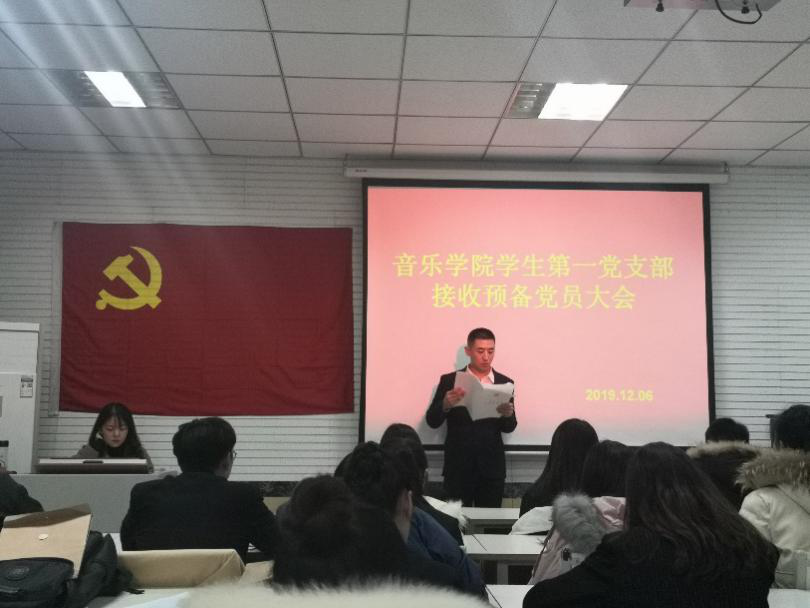 学生第一党支部接收预备党员大会在第四多媒体教室召开。大会讨论了于清香等18名同志的入党申请问题。本次会议由党支部书记马媛老师主持。