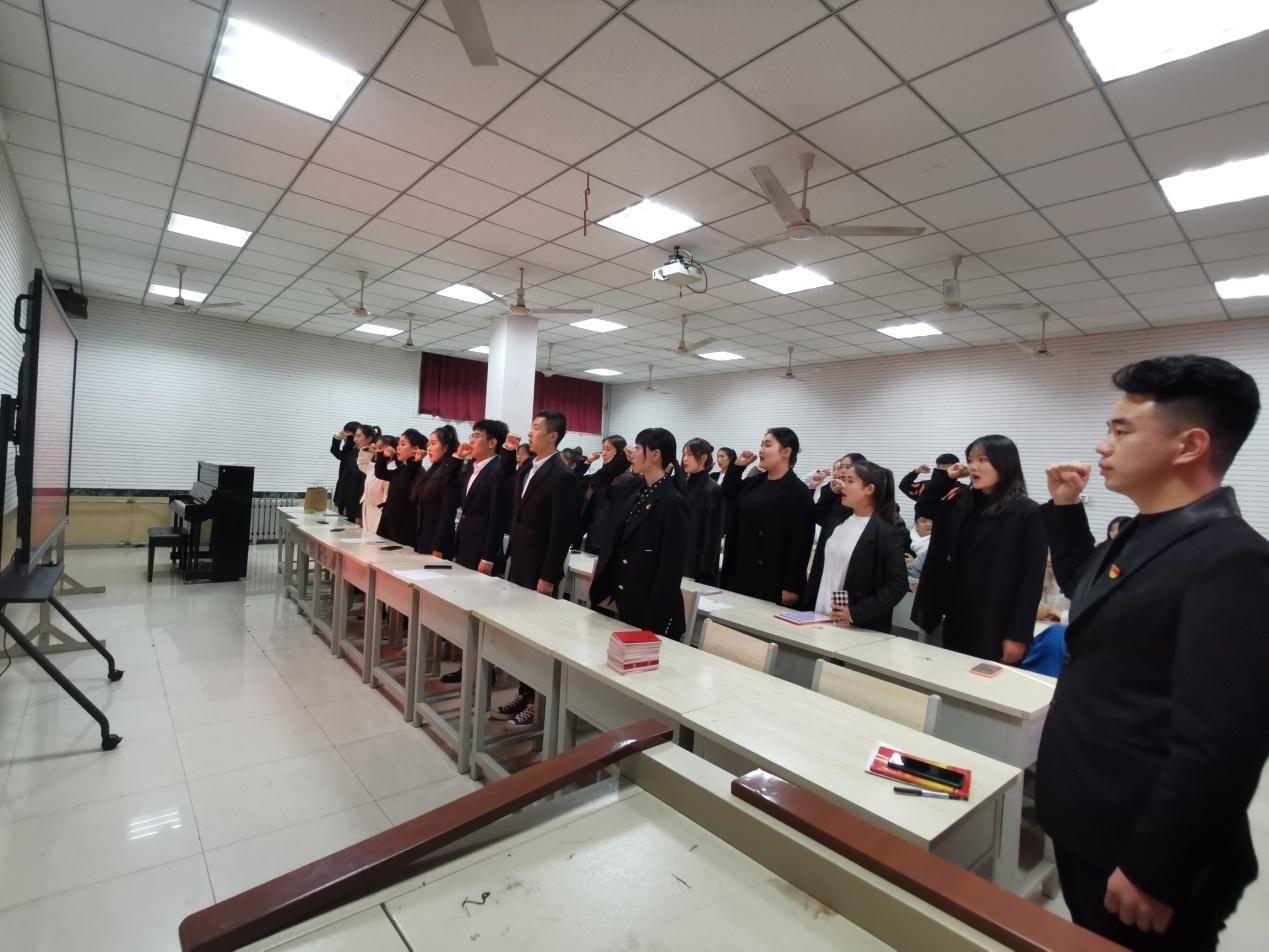 新发展的预备党员师生29人参加宣誓,仪式由学生第一党支部书记马媛主持。