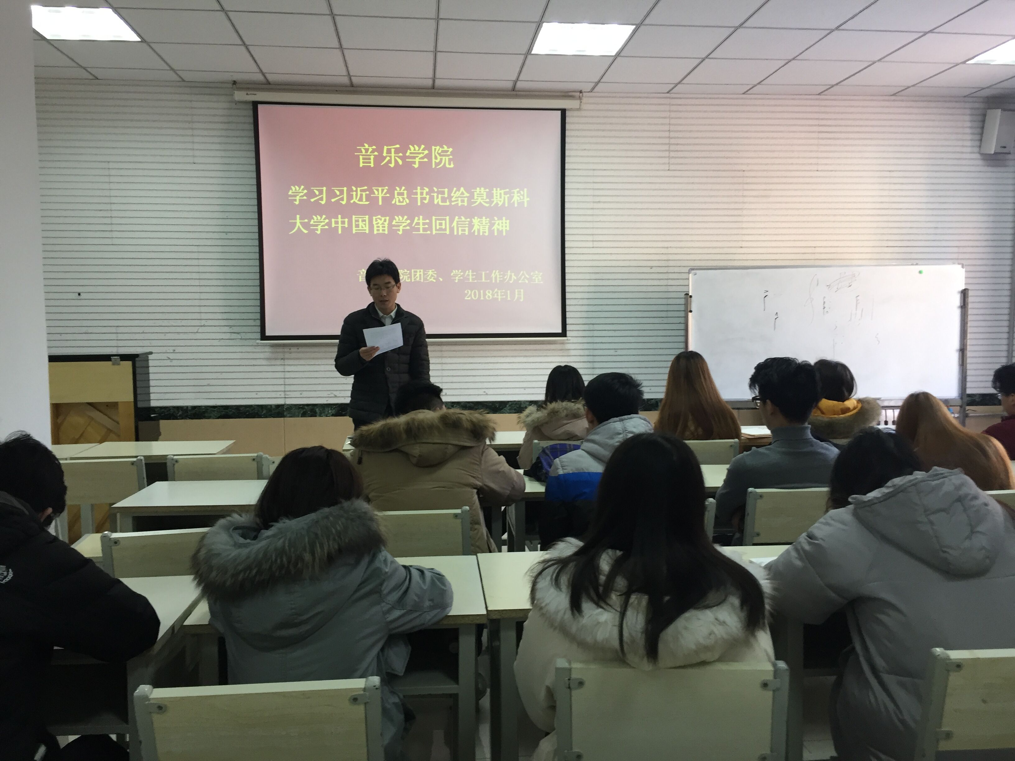 多媒体3教室开展了关于习近平总书记给莫斯科大学中国留学生重要回信精神的学习活动。学生工作办公室主任、团委书记高学德老师与学生们一起进行了学习。