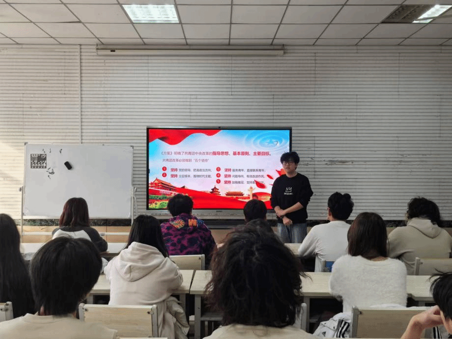 部分团员与青年干部参与此次活动,本次宣讲由院学生会团学部部长赵浚屹作为主讲人。
