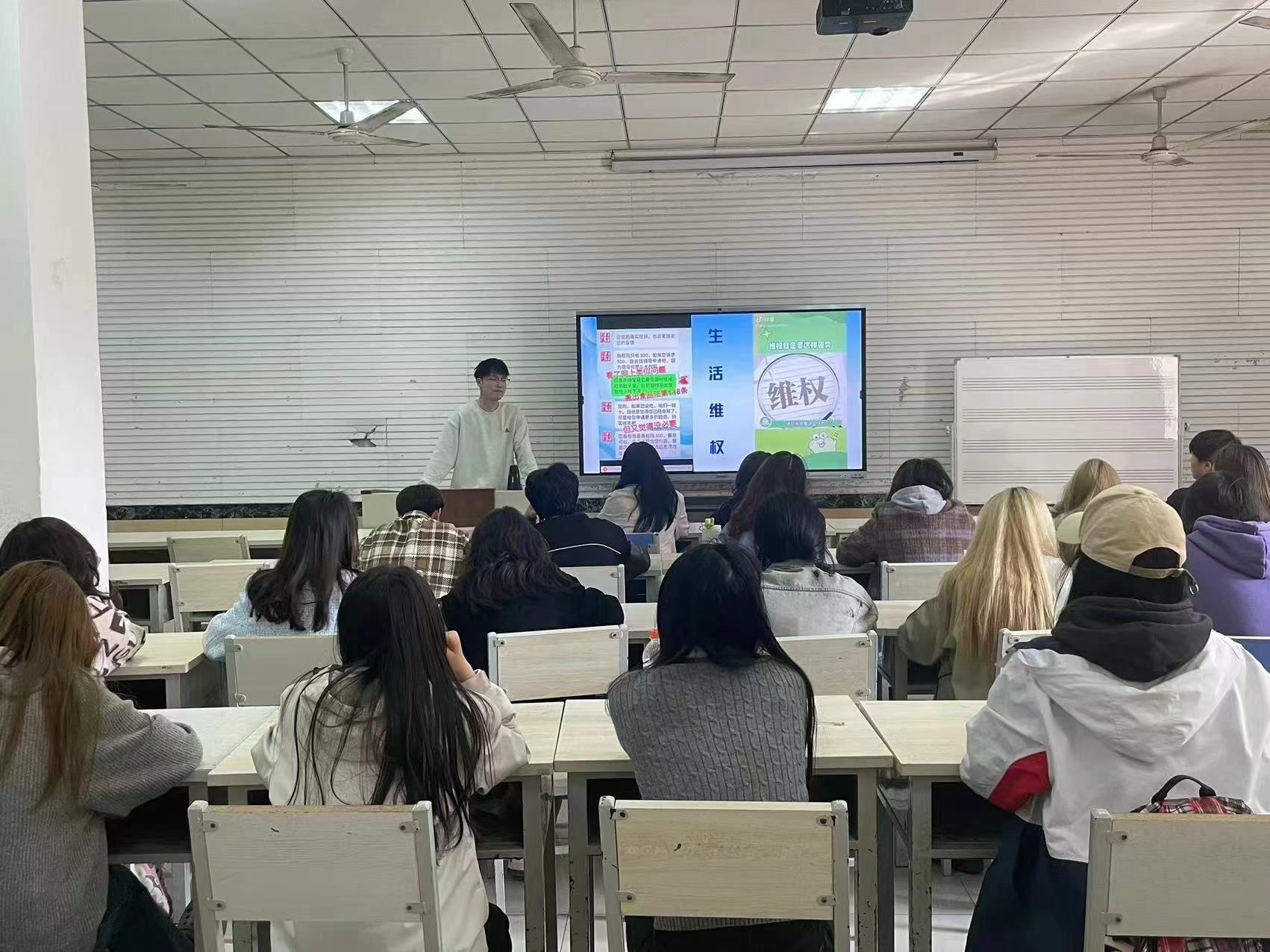 多媒体教室一举办了一场主题为“和谐消费促进发展,维权意识进校园”的主题活动。