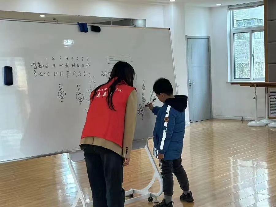 志愿者们以授课的形式,积极引领社区儿童一同深入探索乐理知识、声乐演唱以及钢琴弹奏技巧。通过一系列系统而全面的音乐理论课程,帮助孩子们逐步建立起坚实的音乐基础,培养音乐鉴赏能力。在志愿者的耐心指导下,孩子们不仅学习了音符、节奏、旋律等基础知识,还通过实践演奏,逐渐掌握了声乐和钢琴弹奏的基本技巧。